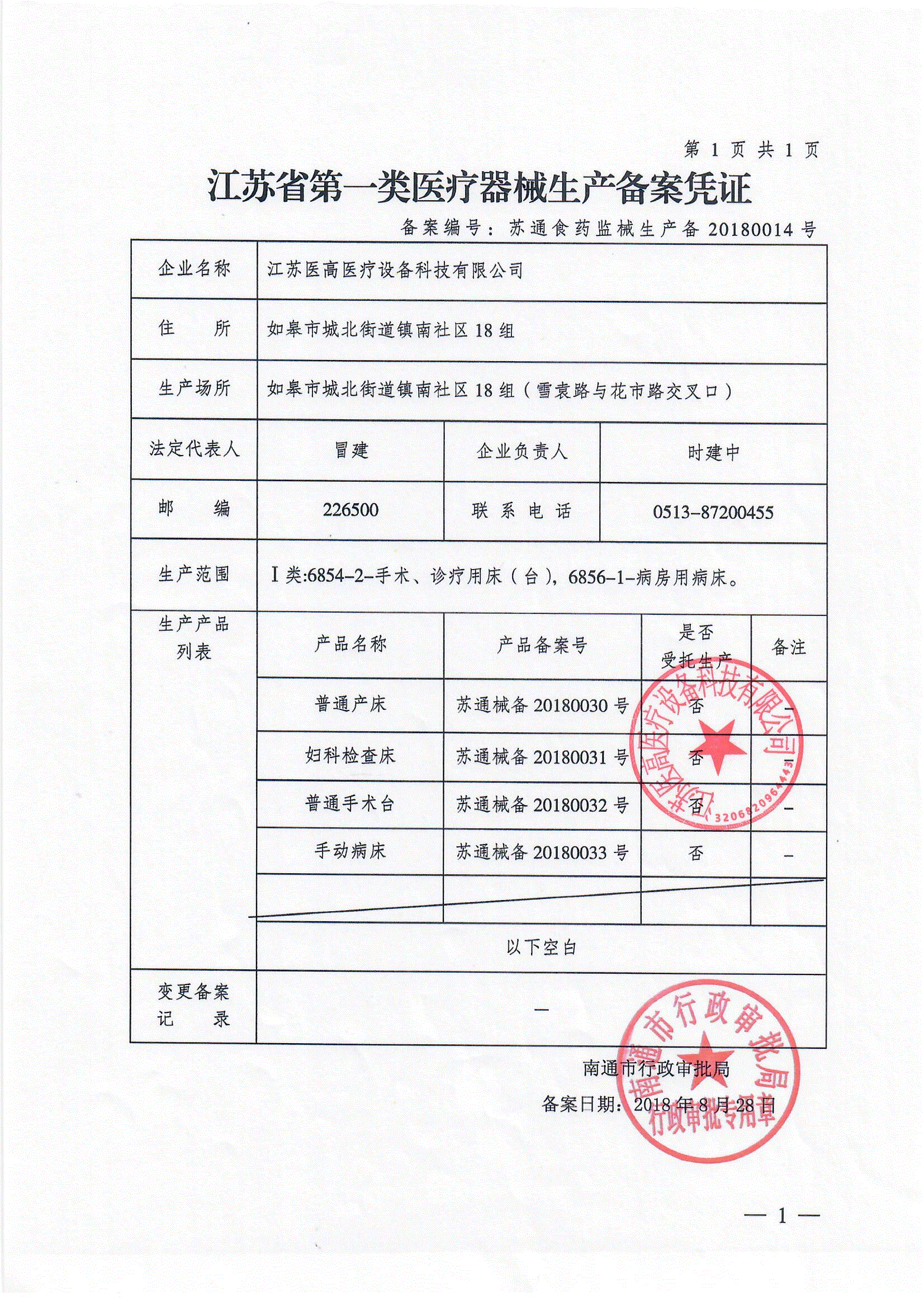 江蘇醫(yī)高醫(yī)療設備科技有限公司位于素有“中國近代第一城”美譽之稱的南通。瀕江臨海,距南通機場、南通火車站僅20公里路程,與上海隔江相望,交通十分便捷。專業(yè)從事醫(yī)療器械的研發(fā)、生產和銷售,下設手術床、無影燈、醫(yī)用吊塔、牽引床、病床、護理設備生產型企業(yè)。具有豐富的醫(yī)療器械、生產經營管理經驗和理念,竭誠為客戶提供優(yōu)質的服務。